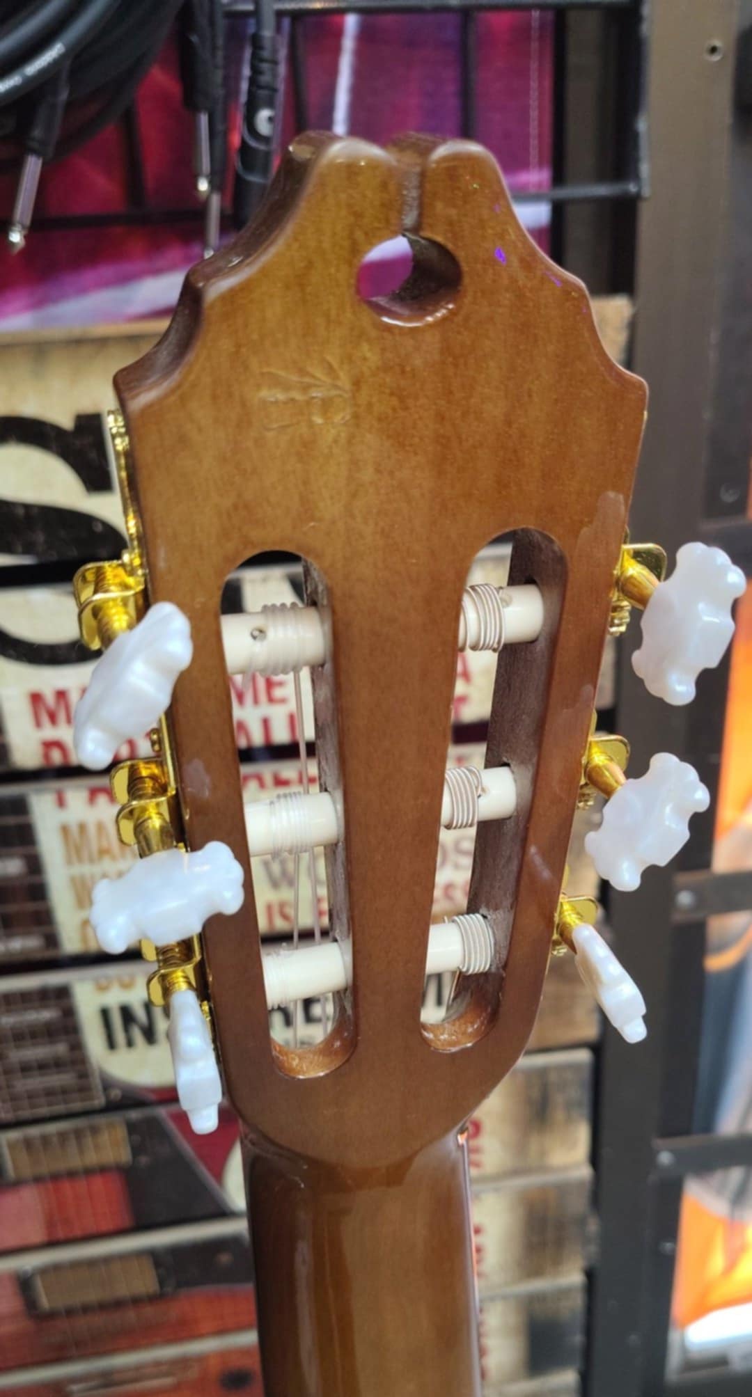 Looking for a classical guitar that hits the sweet spot between elegant tone and modern versatility? This Washburn C5CE Classical Acoustic-Electric is ready to be your new favorite instrument—without your wallet needing CPR. Technically it's "used," but you'd never know it by looking at it. The only giveaway? A small, polite “USED” stamp on the back of the headstock—like a gentle whisper saying, “I’ve been around... but I’m better for it.” No scratches, no dings, and no shady past—just smooth playability and rich, nylon-string tone.