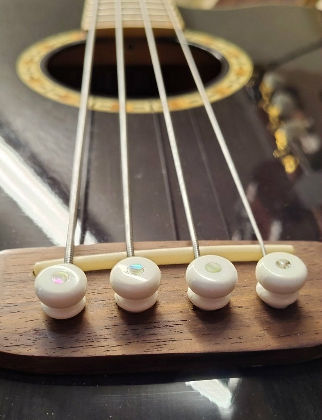 Rosewood fretboard & bridge, abalone Firefly + pearl dot markers